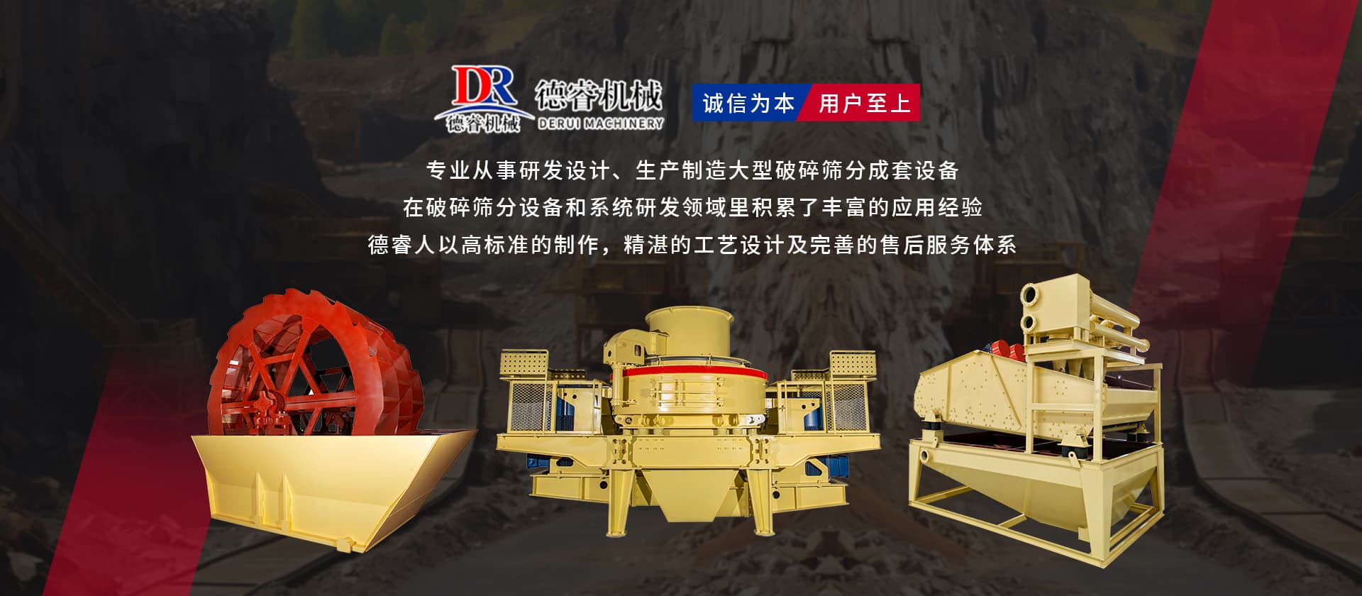 “誠信為本,用戶至上”德睿人以高標準的制作,精湛的工藝設(shè)計及完善的售后服務(wù)體系在破碎篩分設(shè)備和系統(tǒng)研發(fā)領(lǐng)域里積累了豐富的應(yīng)用經(jīng)驗。借助在破碎行業(yè)的豐富經(jīng)驗,公司可向客戶提供碎石制砂生產(chǎn)線設(shè)計、安裝、調(diào)試等交鑰匙工程,同時承接破碎系統(tǒng)的爆破、裝運、破碎等生產(chǎn)運行總承包。